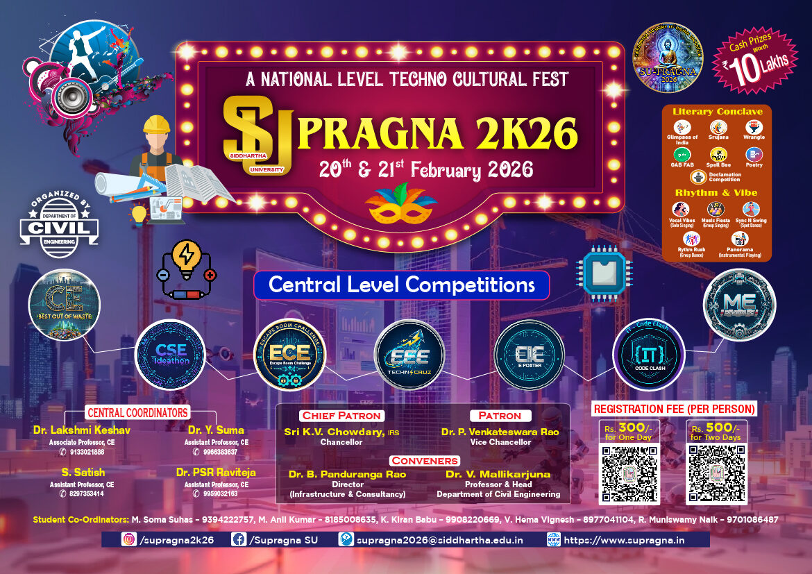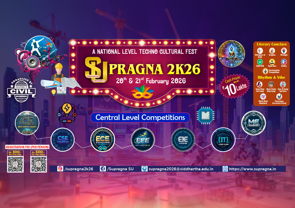 Siddhartha University is committed to preparing students for successful careers by combining strong academic foundations with real-world skills and social responsibility. With a legacy of excellence built on VR Siddhartha Engineering College, the university offers industry-aligned programs, modern infrastructure, and a supportive learning environment that fosters innovation, leadership, and ethical values.
