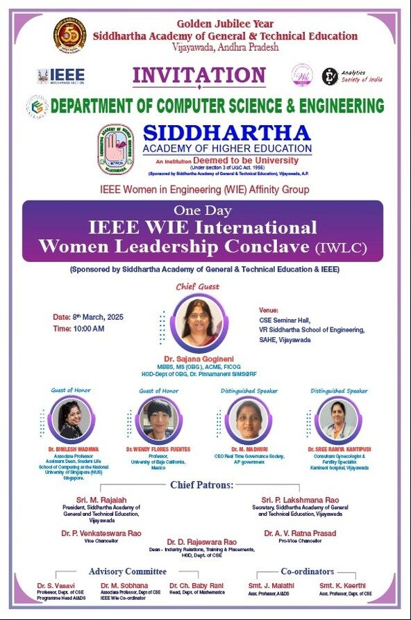 | 12 | Guest Talk | One Day International Women Leadership Conclave Dr. Sree Ramya Kantipudi, Gynecologist & Senior Consultant, Bright Mother & Child Hospital, Vijayawada |