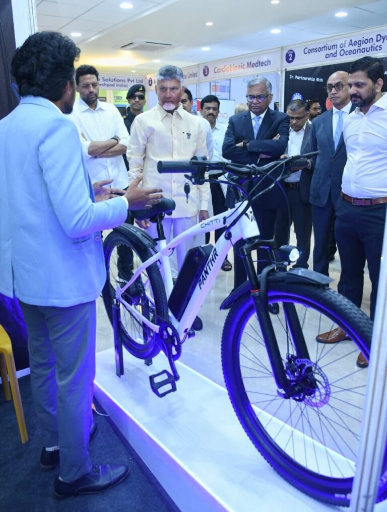 Mr. Avinash, Alumni of EEE Dept and C.E.O Chitti motors Pvt. Ltd, brain child of V.R Siddhartha TBI Foundation, exhibited E-moped in Ratan Tata Innovation Hub, Mangalagiri, during inauguration of RTIH sponsored by G.o.A.P on 20th August 2025. The E-moped was appreciated by Honourable Chief Minister Sri. Nara Chandra Babu Naidu and Tata son’s Chairman Sri.Nataranjan Chandra sekharan.